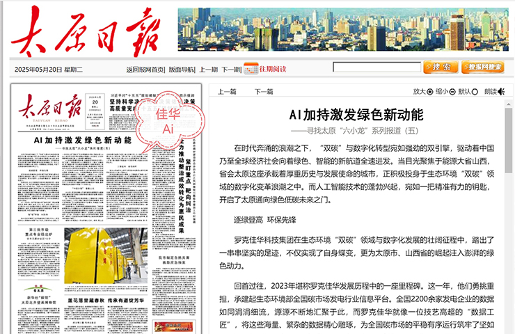 5?20丨《太原日報》頭版頭條報道佳華:AI加持 激發(fā)綠色新動能